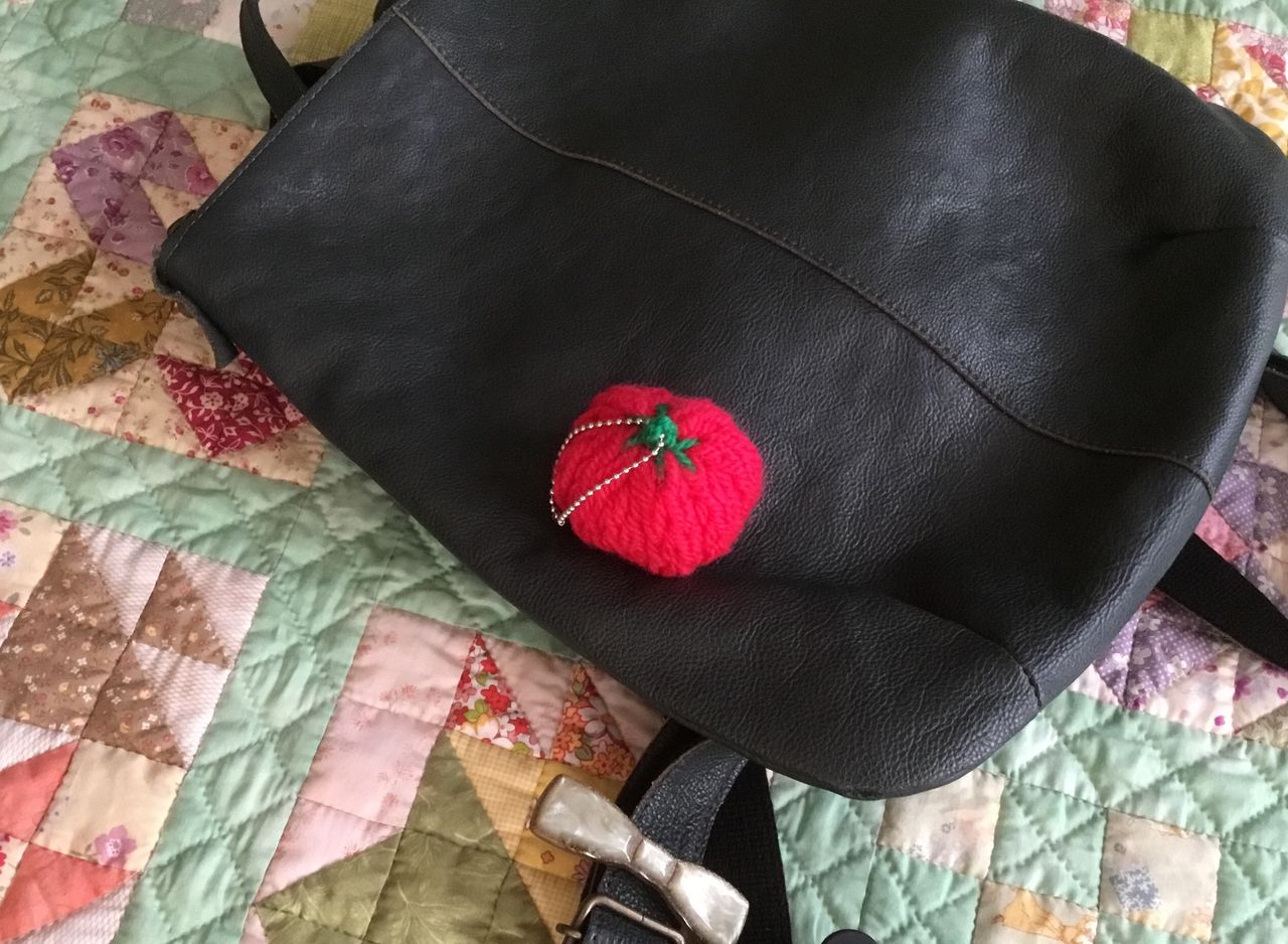 色を合わせてバッグのマスコットを赤いトマト🍅に交換しました。